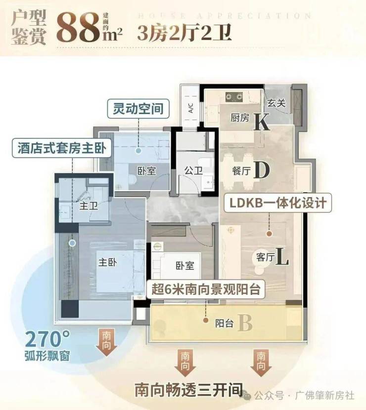 阳台、飘窗、花池赠送,户型使用率超100%;