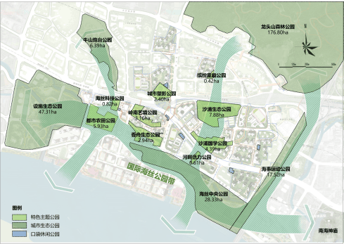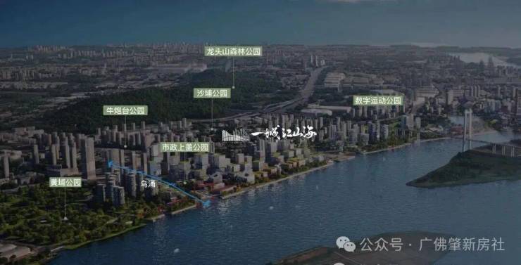 拥揽珠江一线景观、关键还是南向望江,这是连琶洲都做不到,还背靠5000亩龙头山森林公园,南望珠江水,山水相依,所开发地块约90%界面朝向公园,打造 300 米见绿,500 米见园;加上片区规划“5+9”的“公园城市”,一流生态环境实现出门即入园