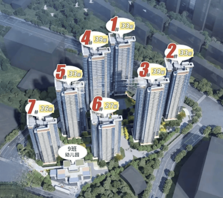 阅山组团全盘一共规划7栋楼,层高26-39层不等,总体货量大约1300+套。