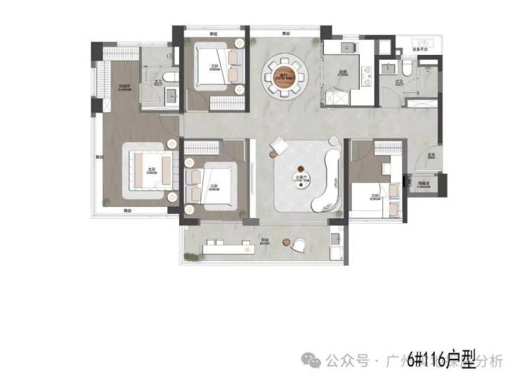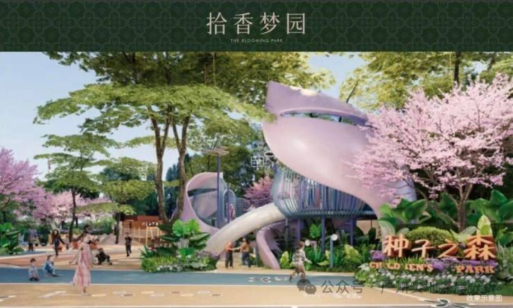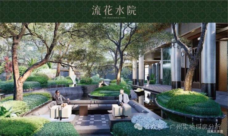 内部景观:园区内规划六大社区花园,优化南侧水道形成一线河景与双公园景观,汲取十香园灵感打造街角公园,保护百年榕树,营造广式生活情调。