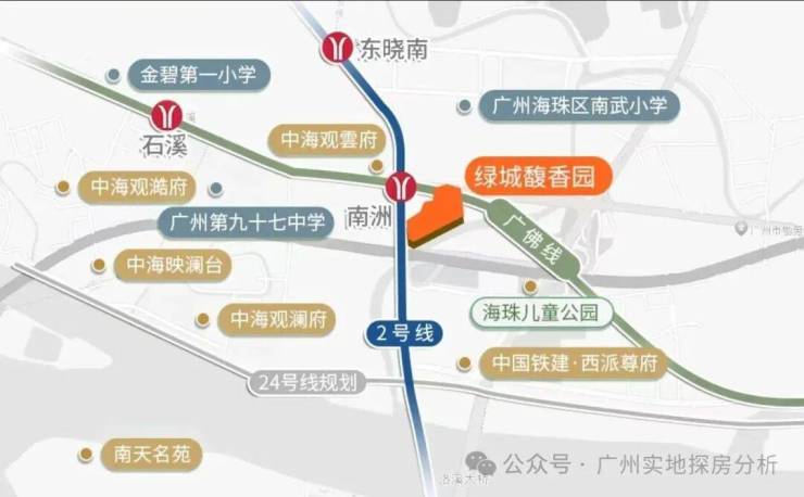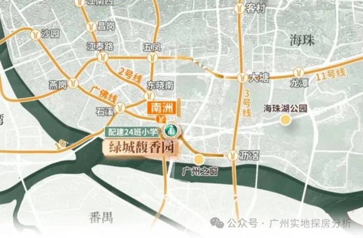 项目位于广州市海珠区南洲板块,紧邻南洲路,东接珠江新城,西靠广佛线,距广州塔、海心沙等标志性地标较近。