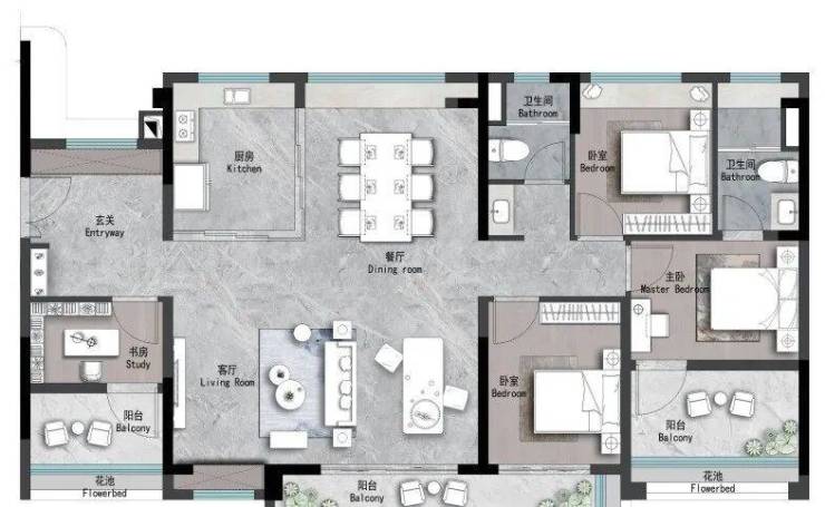 规划:容积率4.71(同区多为30层以上超高层),6万㎡“楚庭十景”园林(含下沉式水景、370㎡泳池、儿童乐园),楼间距开阔,采光通风佳。