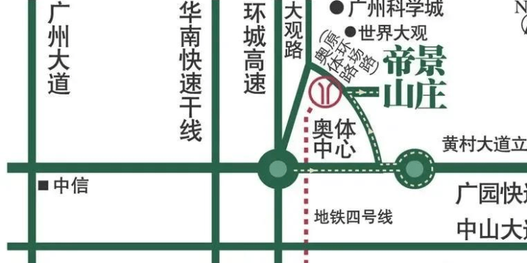 帝景山庄位于广州市天河区奥体路,是“天河CBD”、“科学城”及“开发区”三大经济热点区域的中心,是天河在售的原生态坡地纯别墅社区。帝景山庄南侧是政府投入达2200亿元打造的广州市标志性建筑,也是亚运会主会场之一的广州奥体中心;北面是高新技术产业的示范基地——广州科学城。项目背倚原生态山林城市绿化带,正望世界大观奇特风光,自然舒适的居住环境得天独厚。帝景山庄依山而建,建筑密度20.7%,容积率0.51,绿化面积约10万平方米,平均每户拥有327平方米的绿化面积。合生帝景山庄总户数只有305户,按330亩的总占地面积计算,拥一户一亩地的别墅享有。