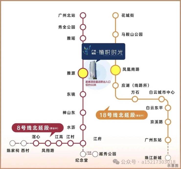 放眼广花路,只有禧悦时光敢称“真地铁上盖”,距离8 号线北延段(在建)雅源站仅约50米,2站速达白云;同时紧邻18号线北延段(在建)凤凰南路站,即便在天河工作,5站亦可快抵;如果是自驾,接驳广花快速路,一脚油门融通主城生活。