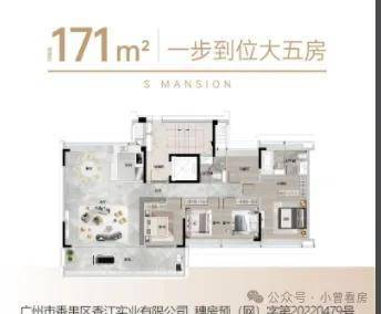 171㎡五房两厅两卫为 8 层小高层,采用专梯入户设计,私密性较好,部分房源能直接看到长隆景观。厨房是 U 型布局,预留了双开门冰箱位置,客餐厨一体化设计让空间利用率更高,适合三代同堂的家庭。
