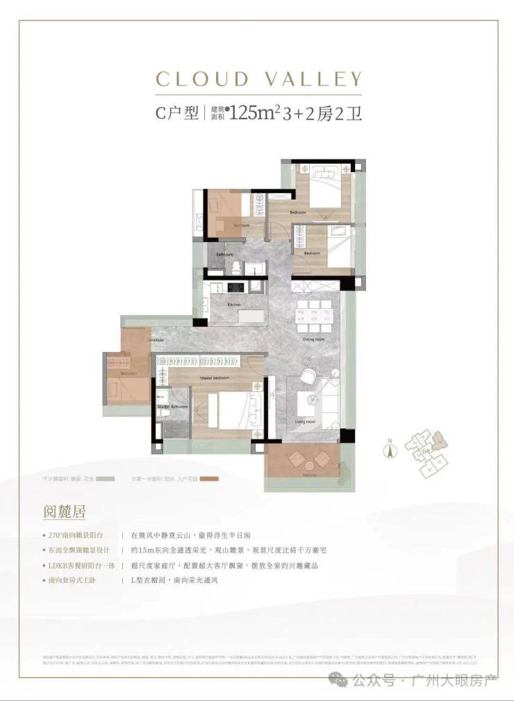 4、125方一线云山景观,白云山豪宅圈唯一不超过144方豪宅面积线无遮挡云山景观产品;