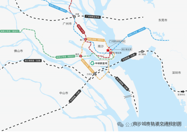 其中一个站点是南沙客运港站,落成后2站即可到达深圳。