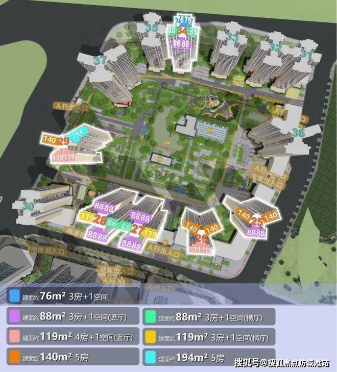 建筑规划采用分期开发模式,容积率为3.2,绿化率达35%,车位配比约为1:1,兼顾了居住密度与停车需求。