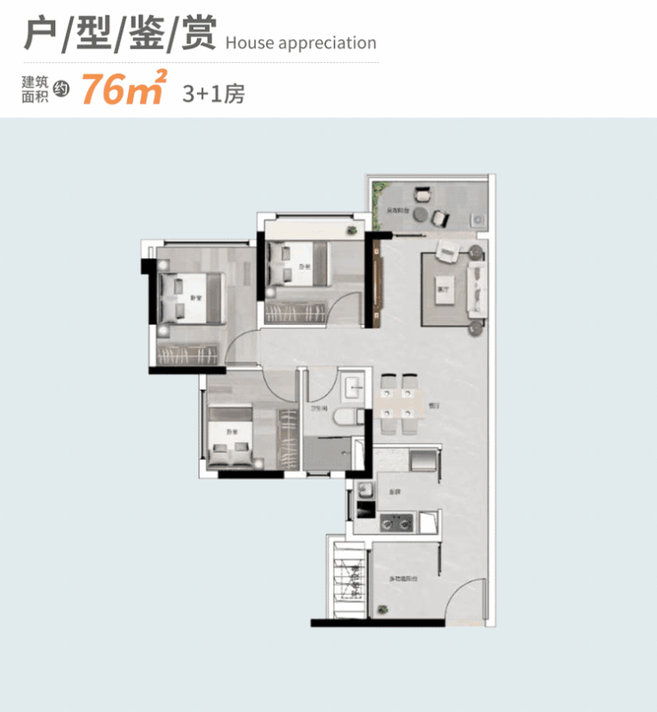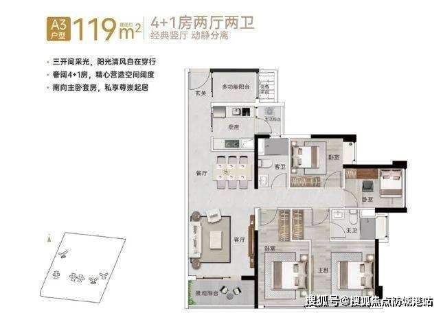主力户型采用“0飘窗”设计,同等建筑面积下可实现多一房的空间布局,如88平方米户型即可做到三房加一空间。
