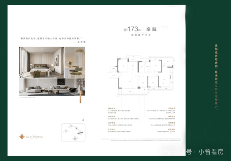 173㎡的四室两厅三卫户型,预留了更多的生活空间,适合人口较多的家庭;