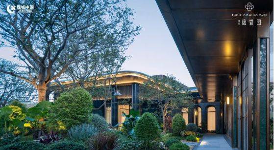 社区内部园林借鉴东京虹夕诺雅酒店风格,打造流花水院、叠水瀑布、下沉式观瀑亭与露天社交会客厅。植被选材考究,从朴树、紫花风铃木到黄皮、鸡蛋花、米兰等,四季轮转,叶香、花香、果香交织,真正实现“细嗅生活馥郁芬芳”。