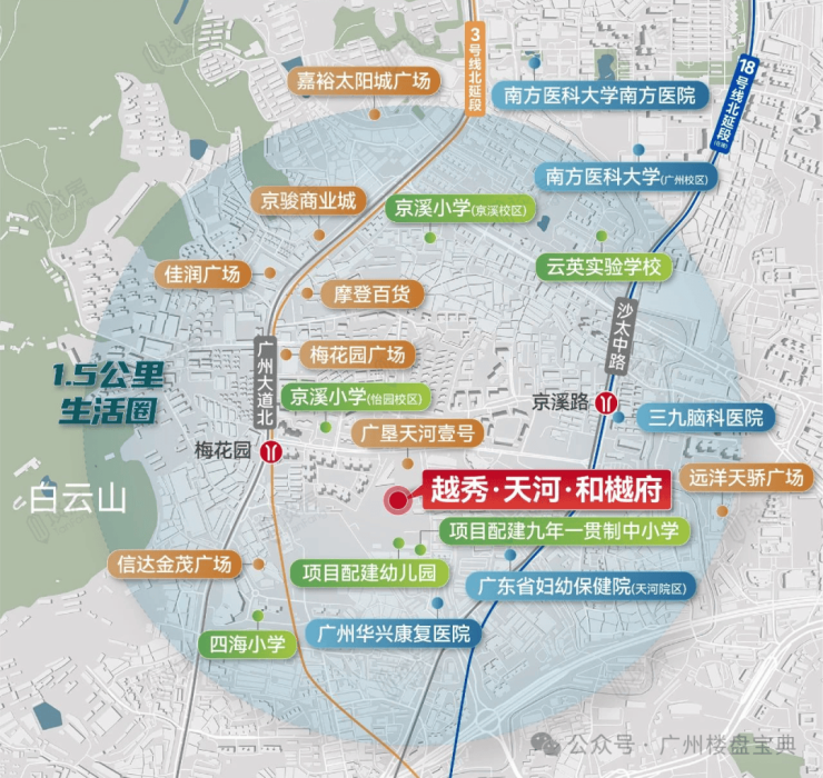 项目距离3号线梅花园站仅800米,步行9-11分钟即可到达,乘坐3号线4站即可到达珠江新城,同时附近18号线北延段约900米(预计26年底开通),开通后1站东站、2站冼村、3站琶洲,项目地铁通勤珠金琶都非常方便。