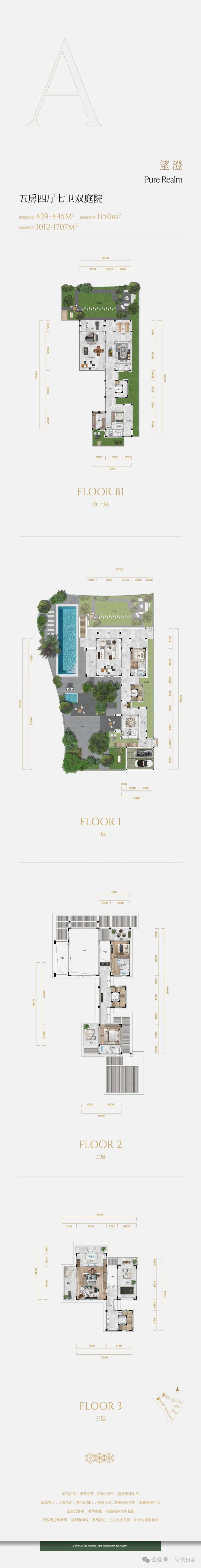 「山海之间 千平大院 独栋别墅」建面约344-445㎡独栋,千平大院的传世藏品①超低密规制,约0.3容积率②层层阔绰花园,无界度假风情③行政级主卧,奢华规制私密静逸