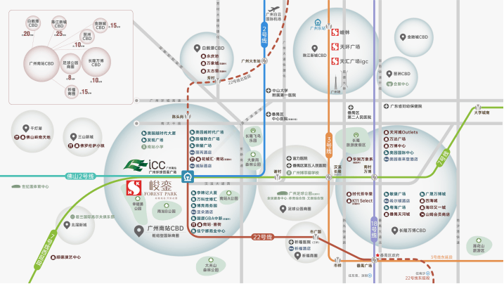 广州南站ICC将按照“西交通(交通、配套),东商务(地标、商务)”的设计理念,体量将会超过香港ICC和广州“天汇广场igc+天环广场”。