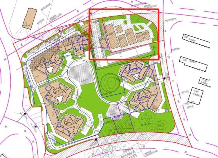 1、项目东北角有一块宗祠跟家塾用地,属于区文保,不拆,还要扩建,介意勿选,我个人觉得祠堂好过寺庙,而且建筑不会太高,不会有遮挡问题完全不存在。