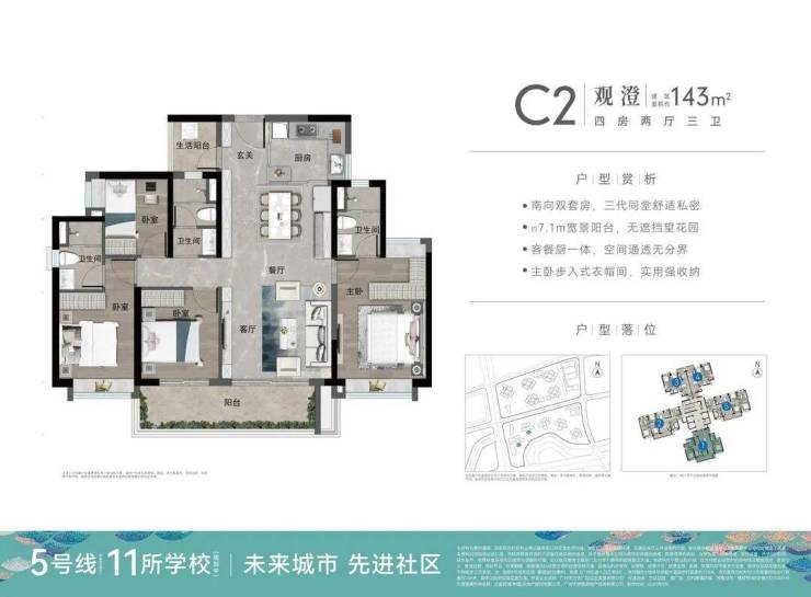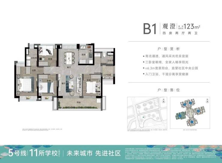 户型涵盖88-93㎡三房两卫,123、139、143四房两卫及四房三卫,但这边的使用率没有那么高,现楼