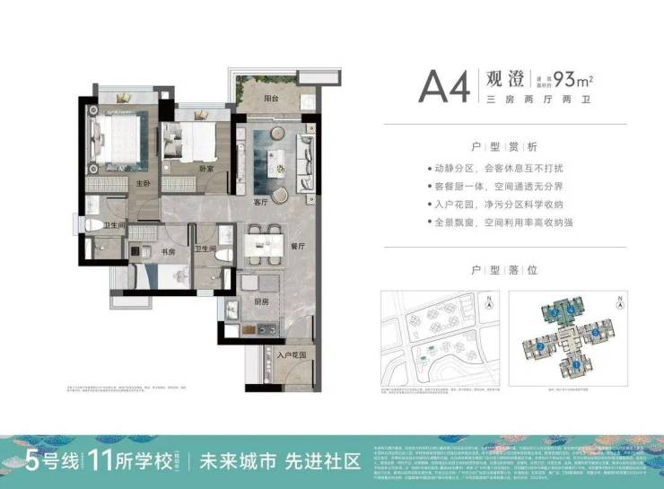 “中央公园”,紧邻大脚印公园,距离地铁约500米,紧邻学校、酒店,户型涵盖75-88㎡三房,105、125、142㎡四房