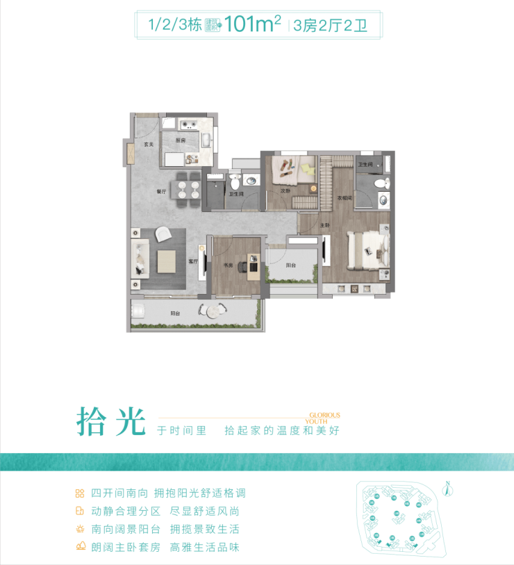 推售67-70㎡和80-85㎡三房、99-103㎡四房,提供给年轻一代拥抱多元化品质生活的理想选择!