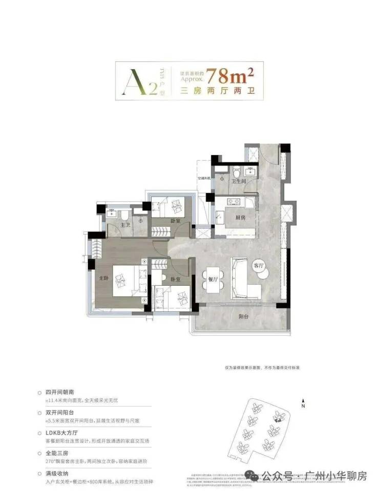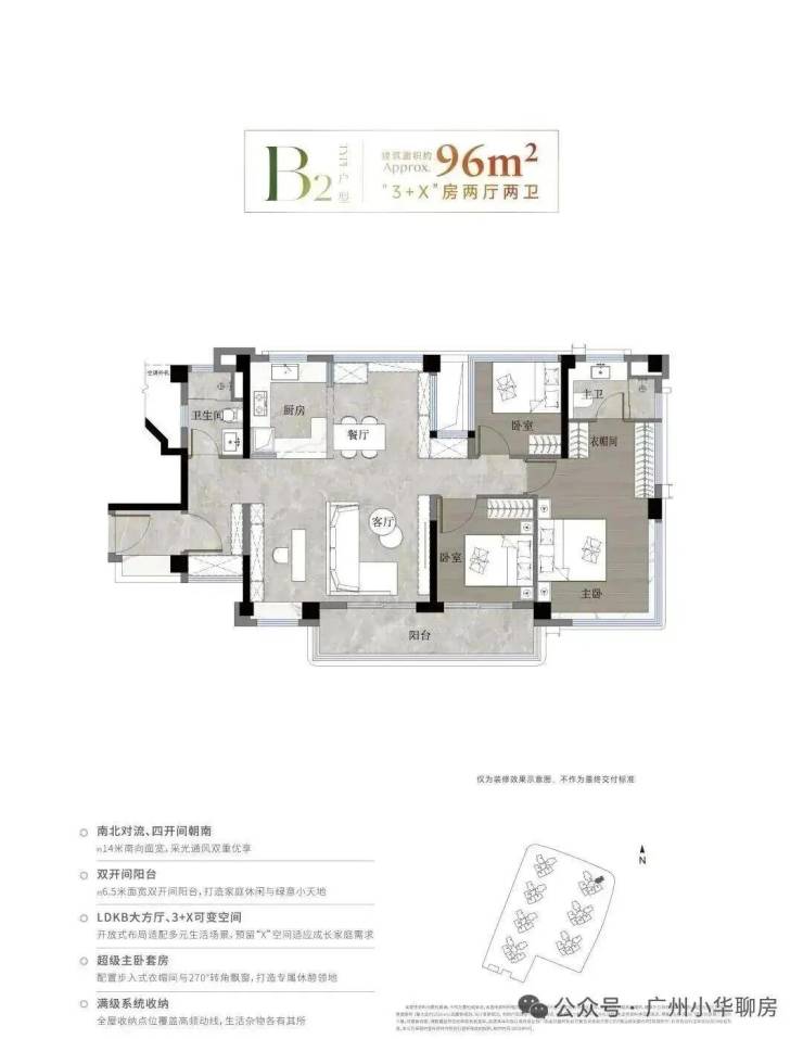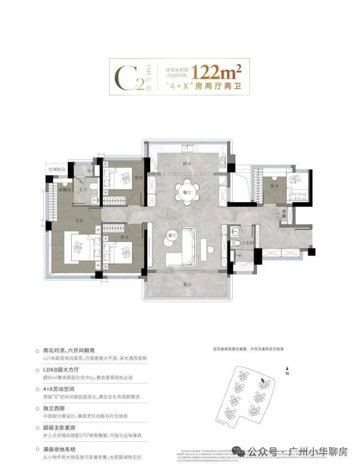 二期社区总规划7栋超高层住宅,以全国首创极致楼型布局,实现全系四开间、全系大面宽、全系南向设计,打造中建‘好房子’广州样本社区