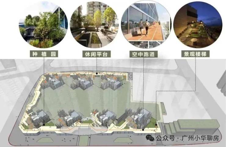 项目裙楼屋面绿化结合7.9米高架空空间打造空中花园,邻里会客/颐养童乐/健身活动等功能,可游可赏