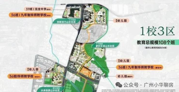 整个旧改三个组团规划了4所幼儿园,1所小学,2所九年制学校,还有1所完全中学【初中+高中】