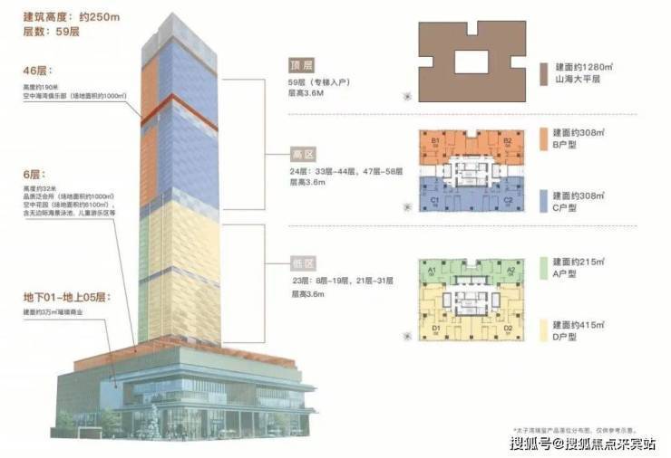 ◎建筑总层数:地下01-地上05层为商业、地上08-59层为品质公寓