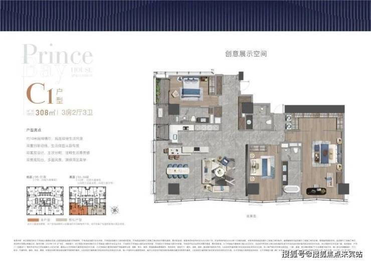 户型分布在高区33-47层,4个户型朝向,也可以两套打通做620㎡大户型,东南跟西南主要看海景,西北跟东北斗可以看部分海景+大小南山景观