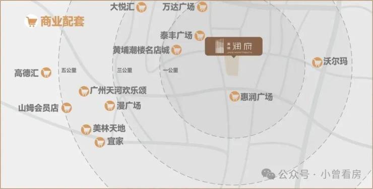 项目的对面就是老黄埔的惠润广场,虽然不是很高端,但也是老黄埔的老牌商业,5号线抵达美林天地、宜家家居、山姆会员店等;7号线通达万达广场、至泰广场等