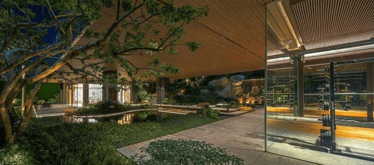 项目顺应了南北地势高差,在建面约1.5万平中央大园林打造约1300平榕樾山水会客厅,既实用,又高级感十足。榕樾山水会客厅,可不是没有由来的随便起名。