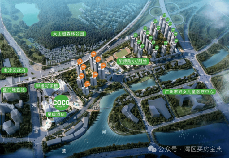8、【揽山观河生态优越】背靠946万㎡大山乸森林公园,优享2.3公里蕉门河生态滨水景观。