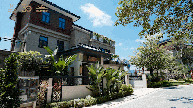在占地面积约12.5万㎡的园林中,“石、水、光、林、云”等五大自然元素,被诗意、艺术、美学浸润。耗资过亿重金打造,栽种约400米香樟大道、非洲进口加拿列海枣名贵树种,全冠移植的十八学士白茶花,搭配多种季节性水果树名贵绿植,葱绿苍翠,鲜氧富盈。精选奢贵黄蜡石,打造活水溪流、叠水瀑布,在移步异景之中,找到久违的片刻宁静。