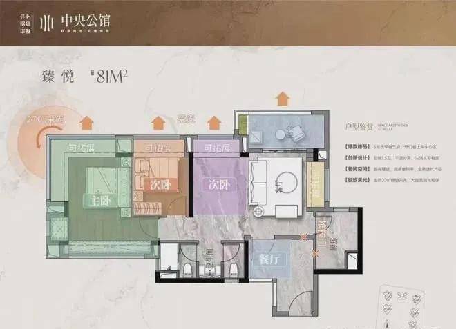 建面81平三房,主卧做到了南北对流设计,客厅预留了飘窗采光和通风都非常好。