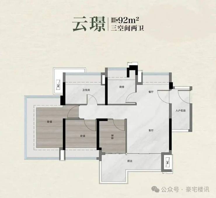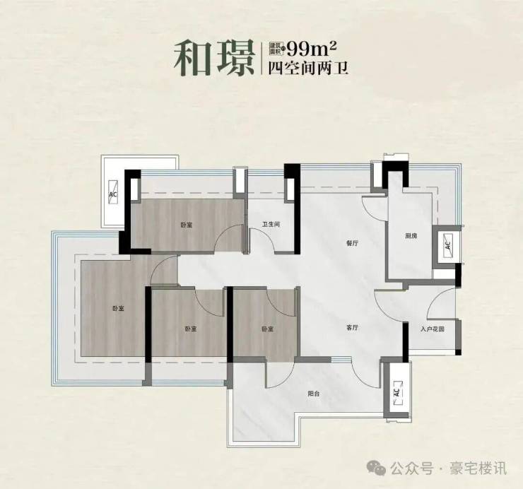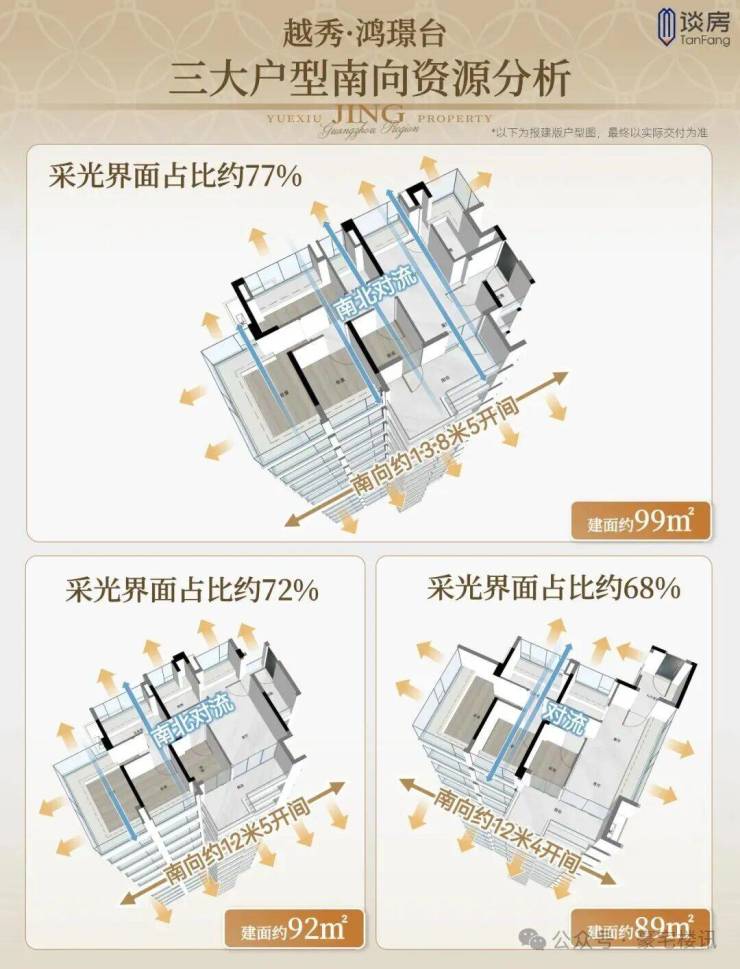 南向平权主张,实现全系南向4开间起步,至少三面采光,将通风对流产品门槛降至92㎡(市面多为100㎡以上)。