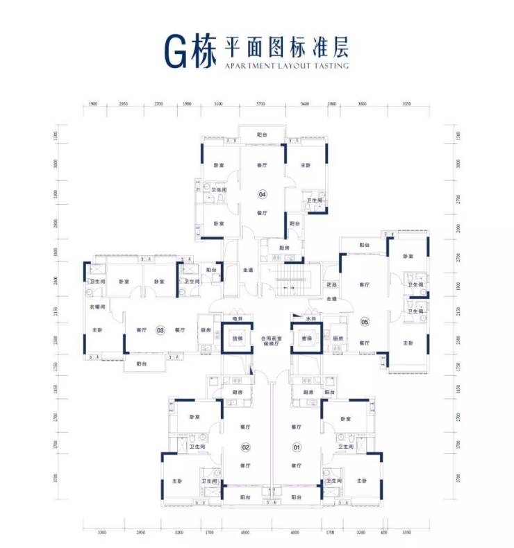 来看其户型,以G栋为例,产品为建面约88-100平两房至三房。
