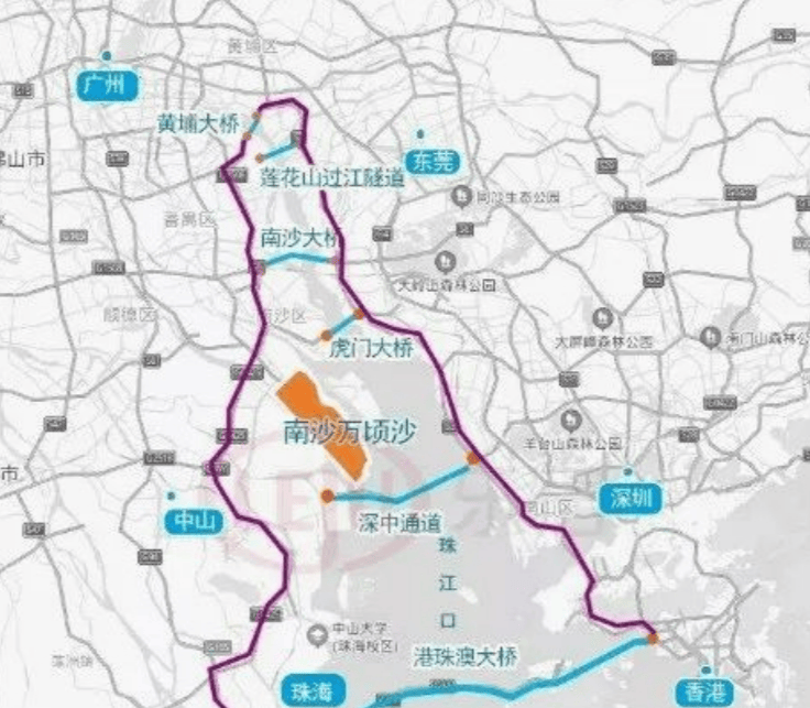 目前万顷沙不仅是南沙规划交通枢纽,更是整个珠三角的核心交通枢纽,规划至少8条轨道: