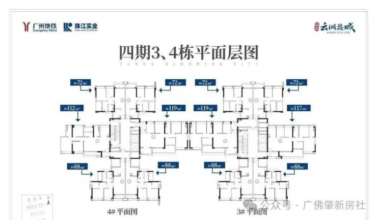 建面约72m²刚需三房户型, 望中心园林景观
