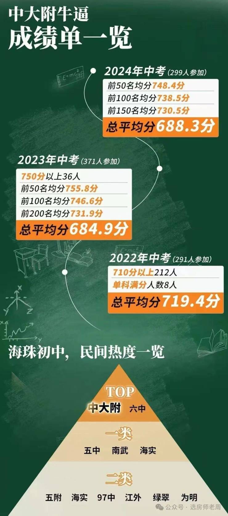 据坊间数据,今年中考,中大附(299人参加中考),前50名均分748.4分。