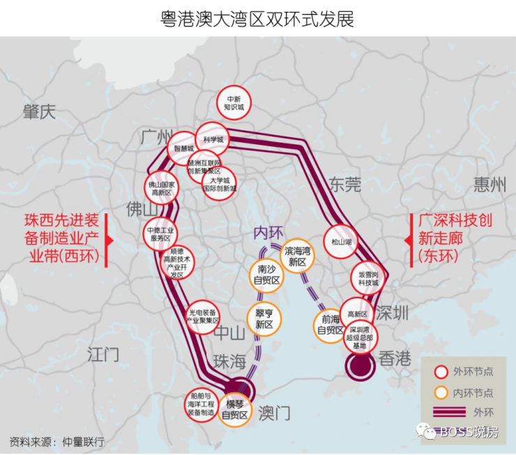 广深港澳科技创新走廊——以番禺国际创新城为纽带起始核心,串联大湾区东西两岸重要节点城市形成双环式产业带。依托科创走廊,粤港澳大湾区研发经费支出占GDP比重达2.7%,国家级高新技术企业总数超过1.89万家,超过40万从事研发的科学家和工程师,处于国际一流水平,已成为粤港澳大湾区创新驱动的强劲“新引擎”。(数据来源:羊城晚报)