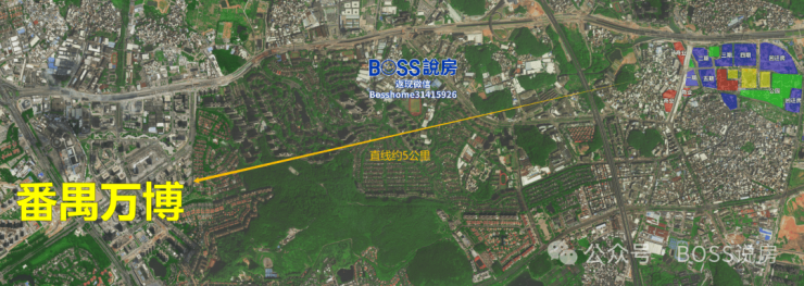 项目距离番禺万博,直线约5公里,自驾15分钟,地铁2个站