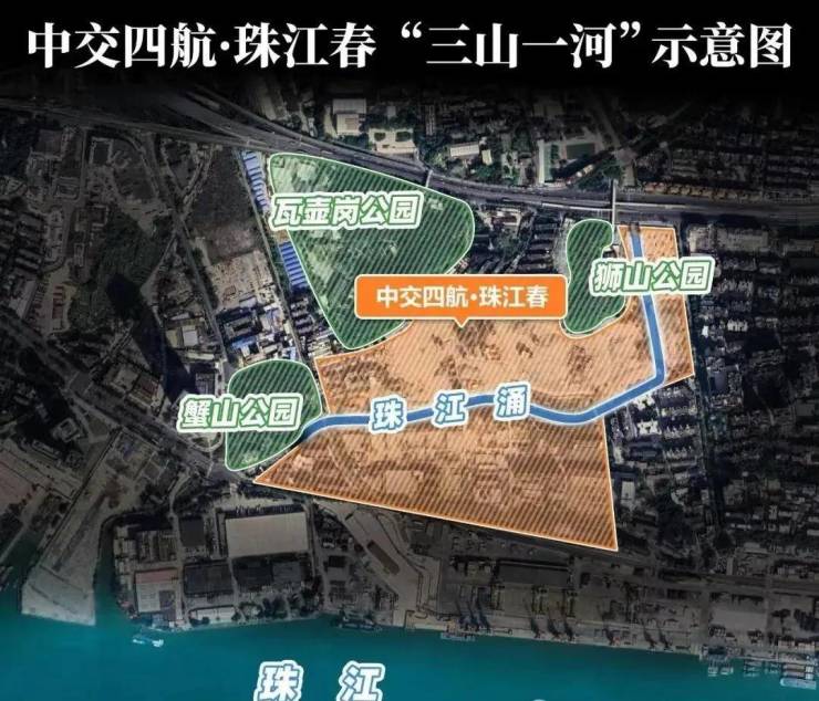 形成一个“三山一水”的自然景观格局,相当于做到内有河涌滨水园林,外有公园、山景与江景的立体生态。