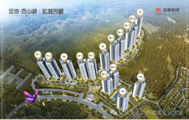「格林朗樾」处于香山湖十年醇熟大城的C位,为项目的半山豪宅组团,以半山之势,规划全点式建筑布局,以更完美的俯视角度,360度观万亩湖山和广州东CBD城市界面。