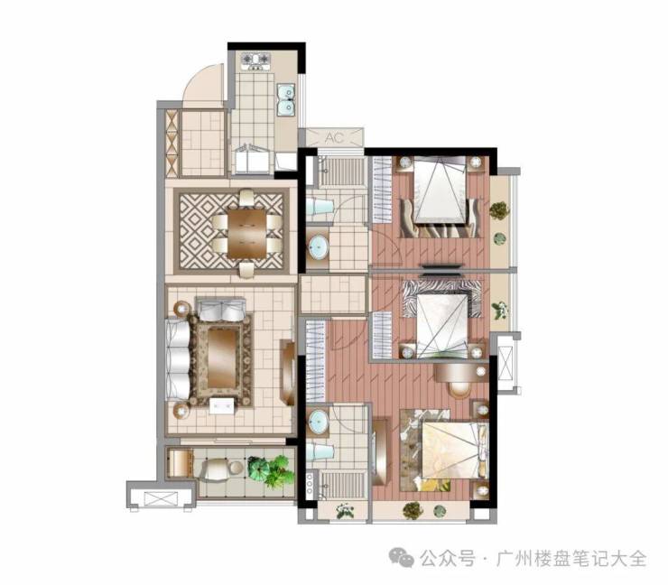 舒享大三房,方正实用,超高空间利用率,主卧步入式衣帽间