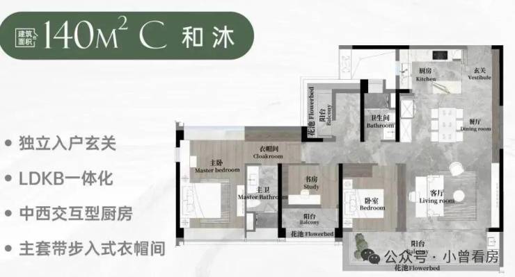 140平方和融:3室2厅2卫,超大衣帽间+入户玄关