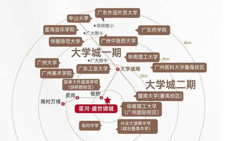 小区自身有配建的学校,其中包含1所36班复建小学、1所18班融资幼儿园、1所12班复建幼儿园,初中有比较大的可能会蹭隔壁星汇锦城的番禺中学。