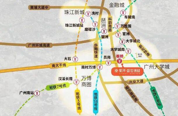 公共交通方面,小区距离地铁7号线板桥站步行只需要500米。这点是要优于越秀星汇锦城的。板桥站出发,到达南村万博站就两站。坐一站到达大学城南,又可以换乘4号线,十分便利。