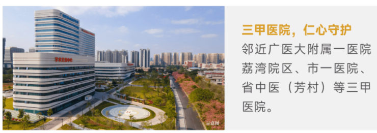 医疗方便,周边三甲医院集群环绕,项目3公里范围内拥有5家三甲医院、4家二甲医院 。南方医科大学珠江医院,广州医科大学附属第二医院,广东省中医院芳村医院,广州医科大学附属第三医院,广州市第一人民医院鹤洞分院等。