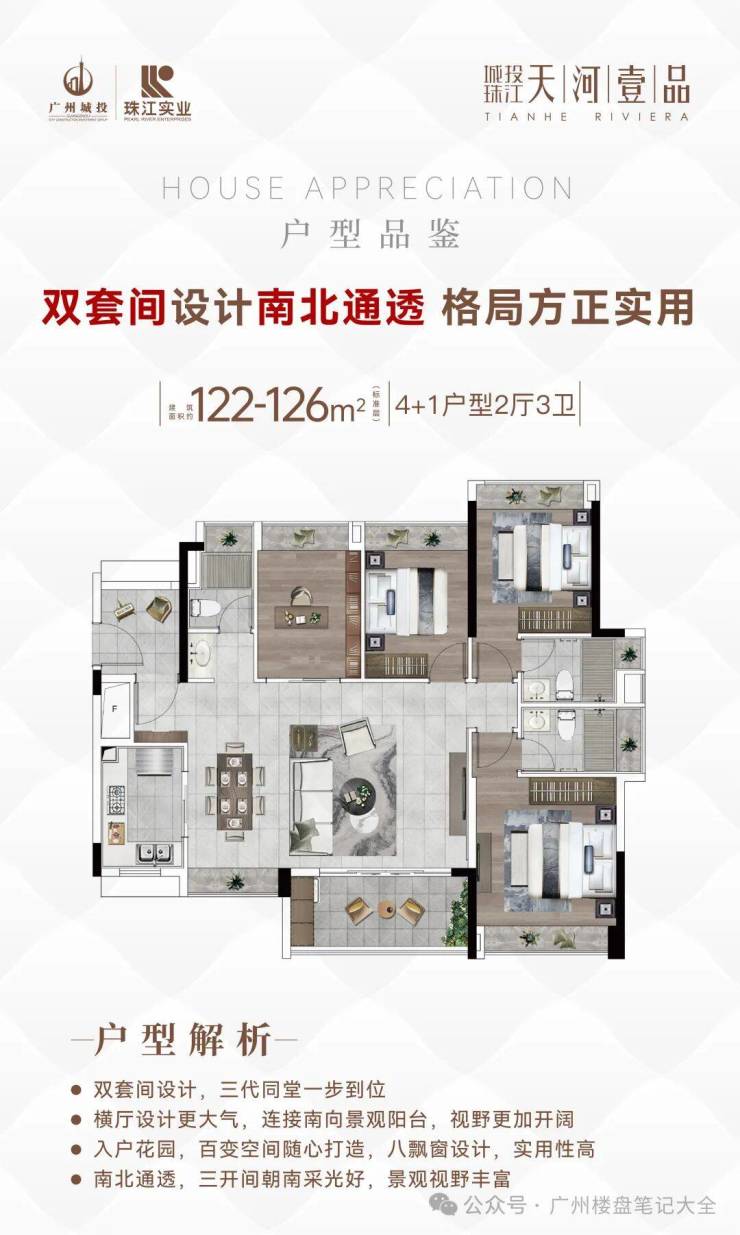 卖点五、品牌:广州城投、珠江实业两大国企联手打造,实力雄厚,品质担当, 广州城投:城市建设的先行者,代表作有广州塔、猎德大桥系统工程、海心沙等中轴地标: 珠江实业:广州知名国企,代表作有白天鹅宾馆、中国大酒店,天河体育中心等广州市标志性建筑。