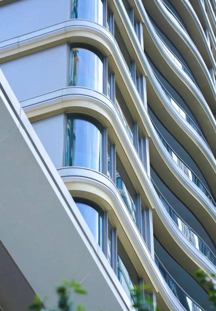 项目采用成本高昂、国际一流顶豪才会采用的铝板搭配全幕玻璃设计。在阳光的照射下,铝板散发出独到的光泽,色彩与材质简洁优雅,有着充满高级感的沉稳之美。