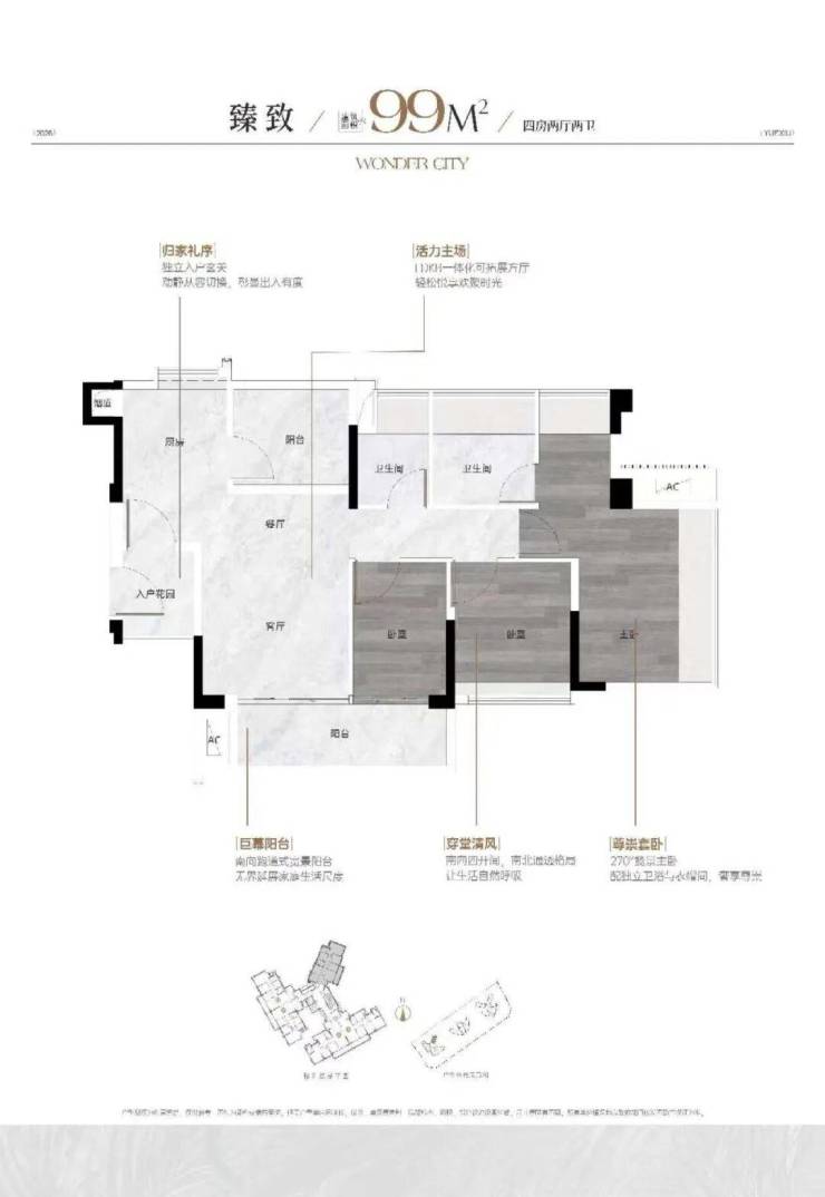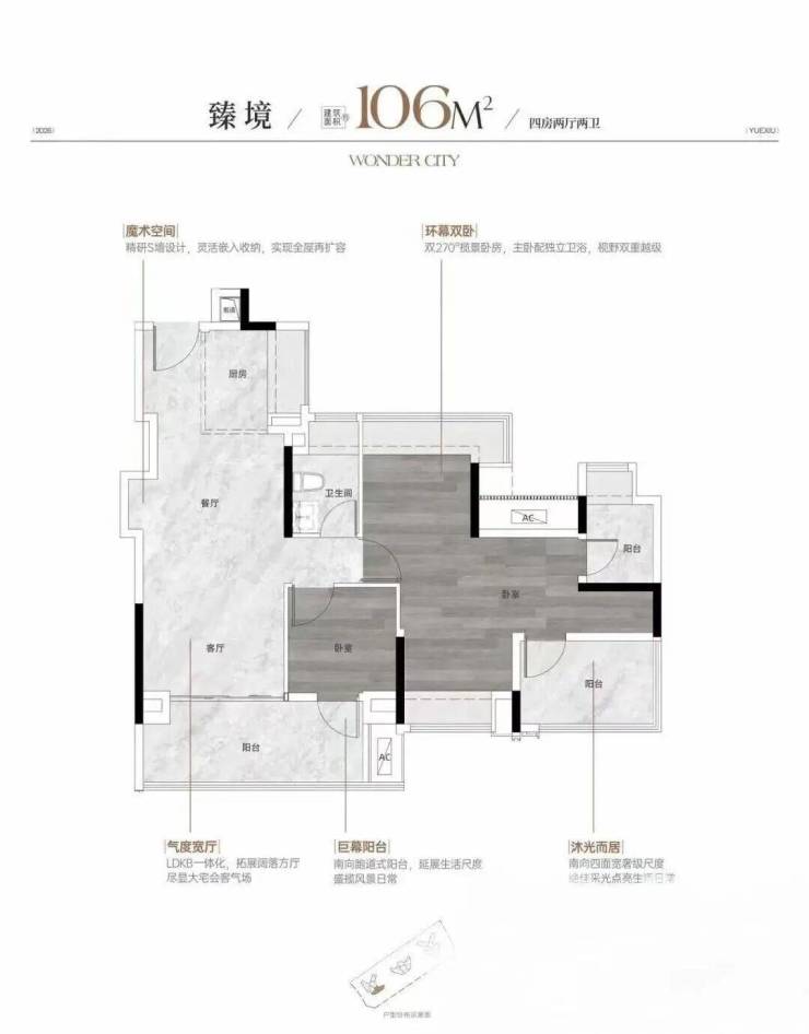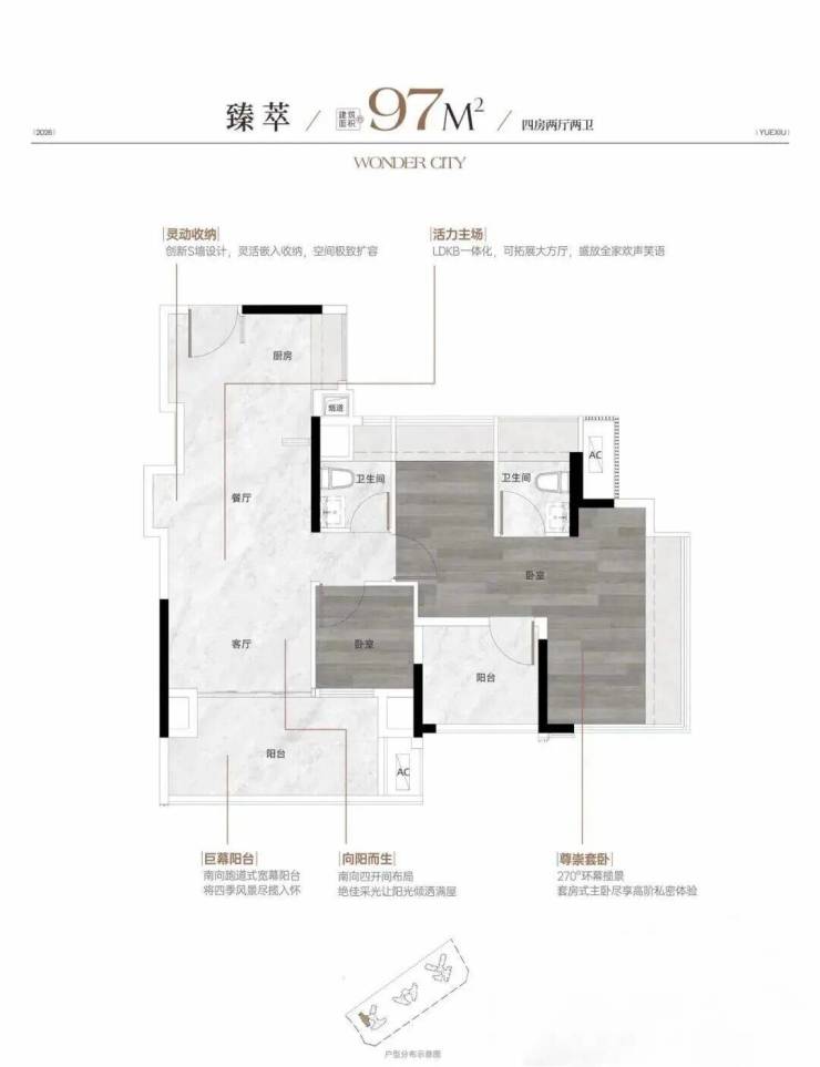约97㎡,是万博唯一100平以内跃级四房。