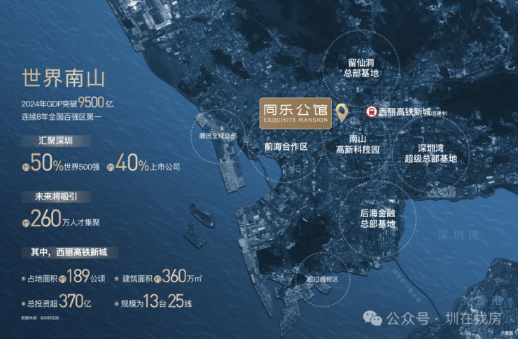 项目雄踞深圳经济主引擎腹地——南山科技园之上,5大全球总部基地核“芯”居住区,西丽高铁新城枢纽发展辐射,共享湾区繁荣